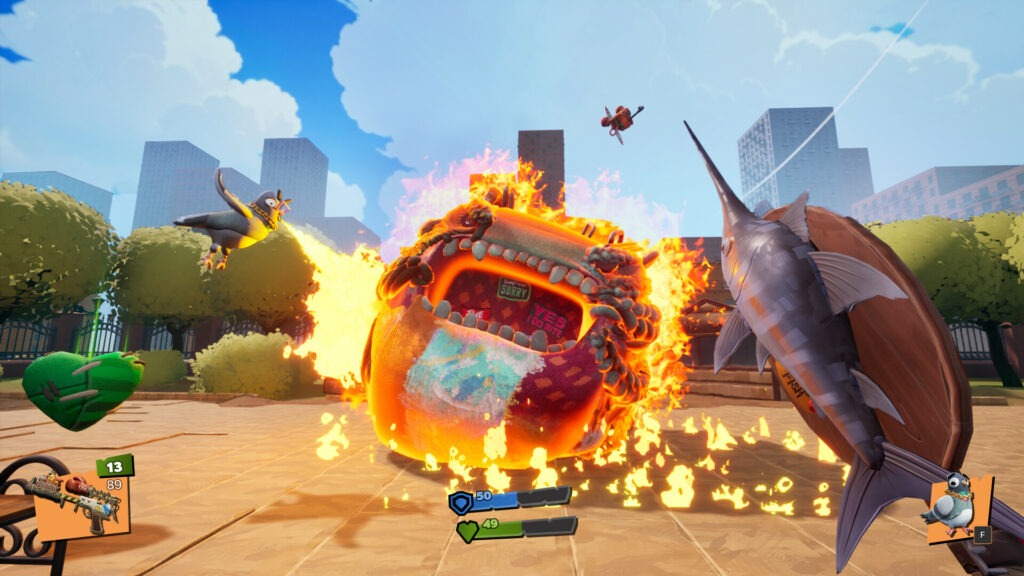 U demo verziji na raspolaganju ćete imati tri prepoznatljiva oružja: Hamster Shotgun koji ispaljuje drobljive orašaste plodove s razornim širenjem, Rapid-Fire Machine Gun automat i Swordfish Blade za pokolj prsa u prsa.